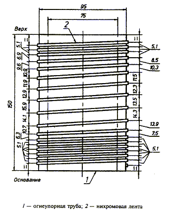 6.3.4. Нагревательный элемент рекомендуется изготавливать из никель-хромовой (80/20) ленты шириной 3 мм и толщиной 0,2 мм. Его располагают на поверхности трубы в соответствии со схемой, приведенной на рисунке А2.