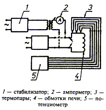 6.4.2. Подключить нагревательный элемент печи к источнику питания в соответствии со схемой, приведенной на рисунке А6. При испытаниях автоматический контроль температуры в печи осуществлять не следует.