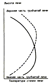 6.4.6. При неправильной установке печной трубы (вверх дном) необходимо проверить соответствие ее ориентации, приведенной на рисунке А2. Для этого следует с помощью термопарного сканирующего устройства измерить температуру стенки печи по одной оси через каждые 10 мм. Полученный температурный профиль при правильной установке соответствует изображенному сплошной линией, при неправильной - пунктирной линией (рисунок А8).