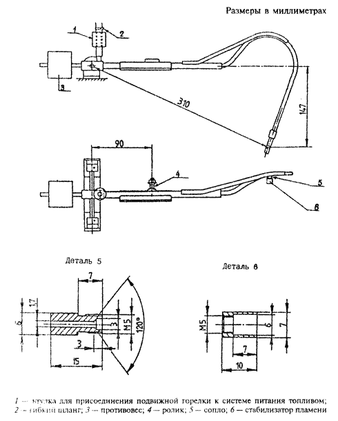 7.4.2. Вспомогательная горелка предназначается для зажигания подвижной горелки в случае ее затухания. Диаметр сопла вспомогательной горелки составляет от 1 до 2 мм.