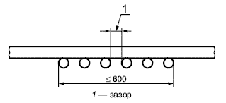 Если для формирования испытуемого образца требуется большое число отрезков, то отрезки крепят к каждой перекладине лестницы плоскими комплектами шириной не более пяти отрезков с помощью той же металлической проволоки. Рекомендуется соседние комплекты отрезков кабеля скреплять между собой и крепить к каждой перекладине, обеспечивая таким способом крепления отсутствие зазоров, как показано на рисунке 3.