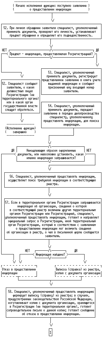 БЛОК-СХЕМА ПОСЛЕДОВАТЕЛЬНОСТИ ДЕЙСТВИЙ ПРИ ИСПОЛНЕНИИ ФЕДЕРАЛЬНОЙ РЕГИСТРАЦИОННОЙ СЛУЖБОЙ ГОСУДАРСТВЕННОЙ ФУНКЦИИ ПО ПРЕДОСТАВЛЕНИЮ В УСТАНОВЛЕННОМ ПОРЯДКЕ ИНФОРМАЦИИ ФИЗИЧЕСКИМ И ЮРИДИЧЕСКИМ ЛИЦАМ О ЗАРЕГИСТРИРОВАННЫХ ОРГАНИЗАЦИЯХ