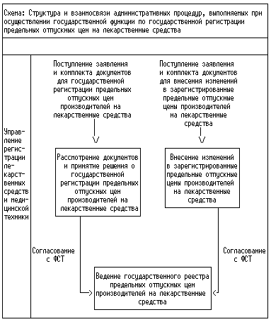 3.1. Структура и взаимосвязи административных процедур, выполняемых при осуществлении государственной регистрации предельных отпускных цен производителей на лекарственные средства, приведены на схеме (Приложение 1).