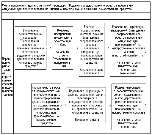 3.5. Административная процедура "Ведение государственного реестра предельных отпускных цен производителей на жизненно необходимые и важнейшие лекарственные средства" осуществляется в связи с выполнением административной процедуры "Рассмотрение документов и принятие решения о государственной регистрации предельных отпускных цен производителей на лекарственные средства настоящего Регламента в соответствии с нижеследующим порядком (схема осуществления административной процедуры приведена в Приложении 5).