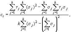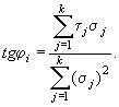 Если при вычислении по формуле (2) получится c_j < 0, то полагают c_i = 0, а tg фи_i вычисляют вновь по формуле