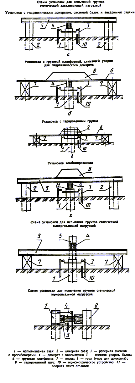 5.1 В состав установки для испытания грунтов сваями статическими вдавливающими, выдергивающими или горизонтальными нагрузками должны входить: