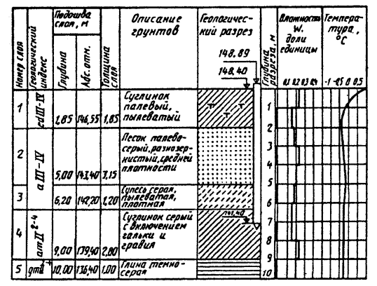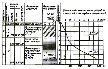 Графики всех испытаний талых грунтов должны сопровождаться инженерно-геологическим разрезом по ближайшей к месту испытания выработке, а при испытаниях в вечномерзлых грунтах - инженерно-геокриологическим разрезом.