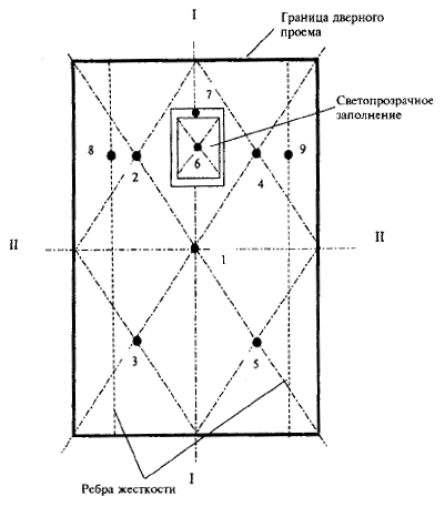 Рисунок А.2 - Схема установки термопар на необогреваемой поверхности двухстворчатой двери
