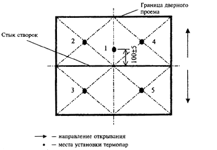 - термопары 2, 3, 4 и 5 - в центре каждой четверти площади дверного проема.
