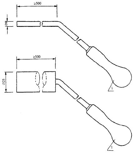 - стальные щупы диаметром 6±0,2 мм и 25±0,2 мм длиной не менее 500 мм с теплоизолированной ручкой (рисунок Б.2 приложения Б).