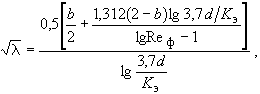 Число Рейнольдса Re_кв, соответствующее началу квадратичной области гидравлических сопротивлений при турбулентном движении воды, определяется по формуле