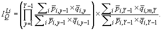 6. Долгосрочный (месяц m года y по отношению к базисному году 0) месячный индекс физического объема Ласпейреса на годовой основе можно получать из краткосрочных годовых индексов по формуле: