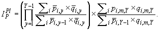 P - надстрочный символ, указывающий на то, что индекс рассчитывается по формуле Пааше;
