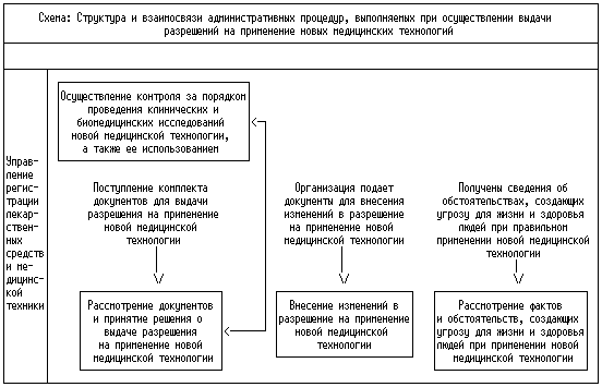 3.1. Структура и взаимосвязи административных процедур, выполняемых при выдаче разрешений на применение новых медицинских технологий, приведены на схеме (Приложение 1).
