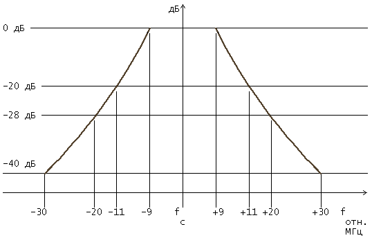 <*> Дельтаf - полоса пропускания по уровню минус 30 дБ.