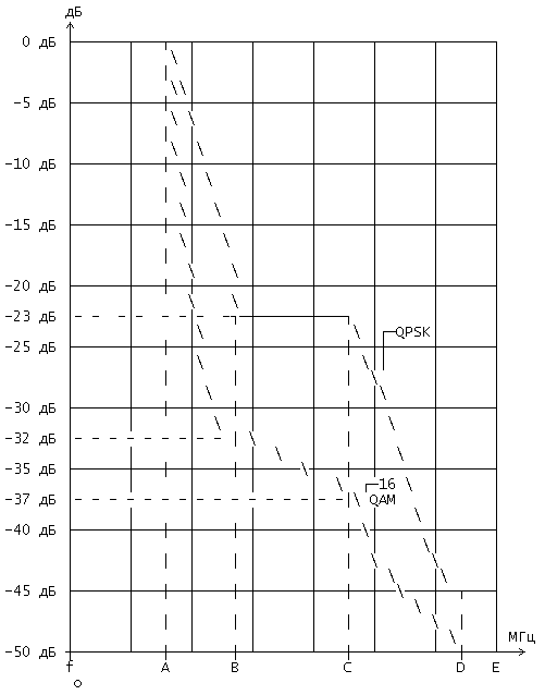 Рисунок 7. Маски спектра для оборудования радиодоступа для БПД с видами модуляции QPSK, 16QAM