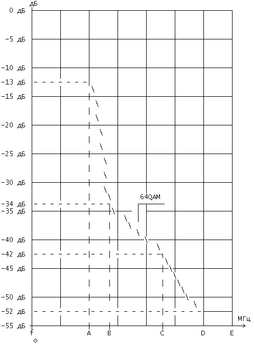 Рисунок 8. Маска спектра для оборудования радиодоступа для БПД с видом модуляции 64QAM