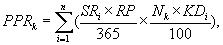 PPR6 = (40 х 0,5 / 365) х (1000 х 31 / 100) = 0,05 х 310 = 15,50 рублей.