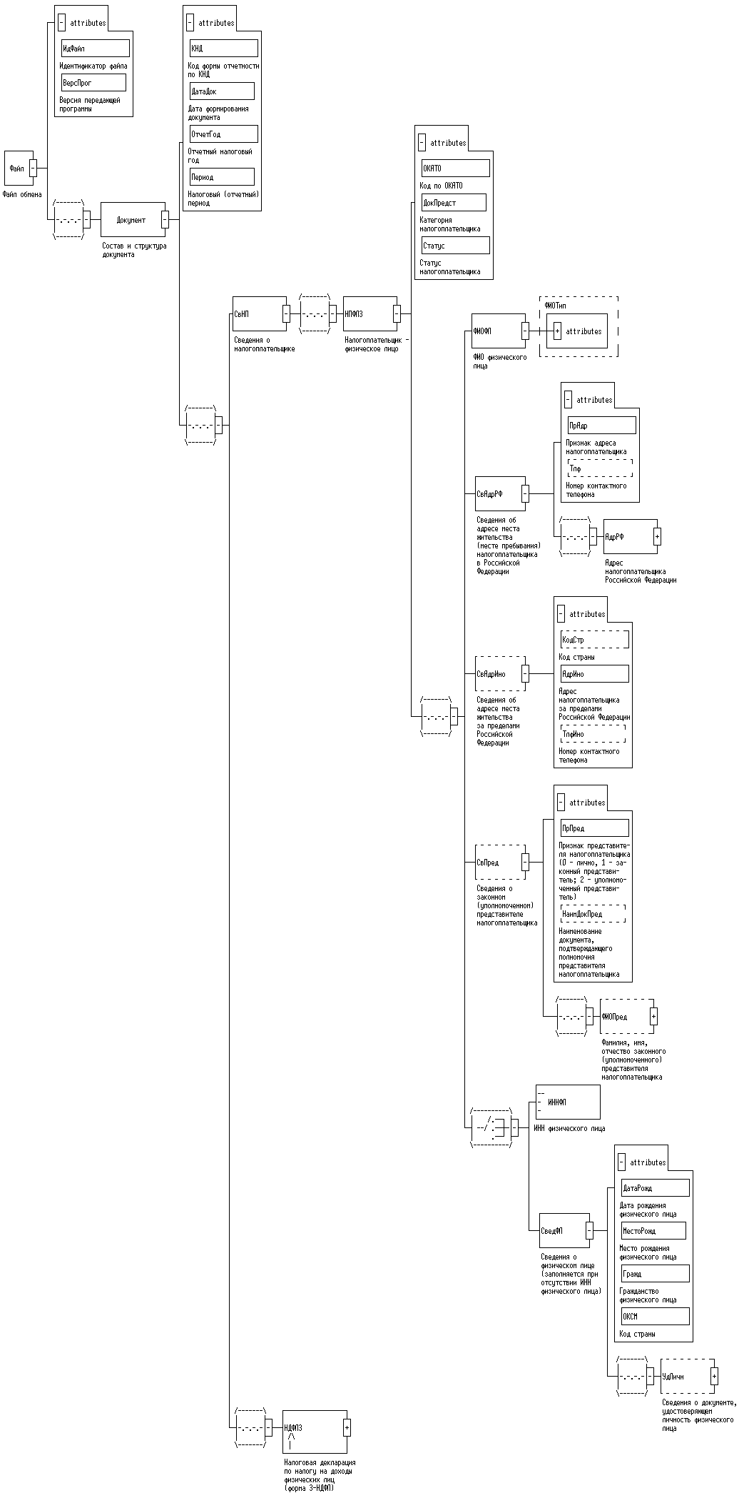 | Налоговая декларация по налогу на доходы физических лиц (форма 3-НДФЛ) | НДФЛ3 | С | | О | Типовой элемент <НДФЛ3> Состав элемента представлен в табл. 4.9 |