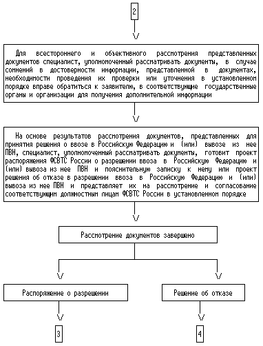 1) прием и регистрация документов, необходимых для принятия решения о ввозе в Российскую Федерацию и (или) вывозе из нее ПВН;