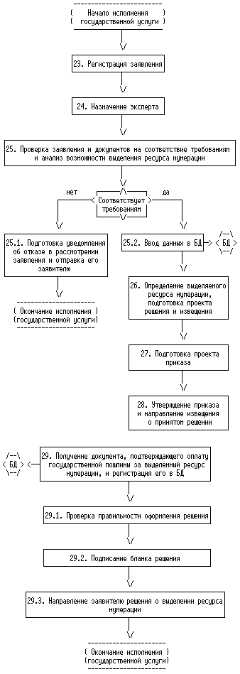 АДМИНИСТРАТИВНОЙ ПРОЦЕДУРЫ ПРИ ИСПОЛНЕНИИ ГОСУДАРСТВЕННОЙ УСЛУГИ ПО РАССМОТРЕНИЮ ОБРАЩЕНИЯ ОПЕРАТОРА СВЯЗИ О ВЫДЕЛЕНИИ РЕСУРСА НУМЕРАЦИИ И ПРИНЯТИЕ СООТВЕТСТВУЮЩЕГО РЕШЕНИЯ
