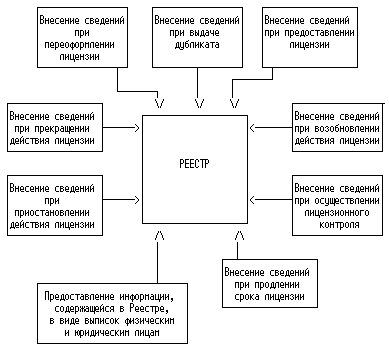 формирование информационных ресурсов о предоставленных лицензиях, переоформленных документах, подтверждающих наличие лицензии, приостановлении действия лицензии, возобновлении или прекращении действия лицензии, аннулированных лицензиях путем ведения автоматизированного реестра лицензий;