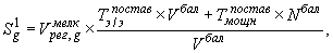 S(1)_g - стоимость электрической энергии (мощности), приобретаемой ГП у g-го мелкого производителя электрической энергии по регулируемым ценам (тарифам) за расчетный период (руб.), определяемая как произведение приобретаемого объема электроэнергии и одноставочного тарифа, установленного органом исполнительной власти субъекта Российской Федерации в области государственного регулирования тарифов для данного производителя (Т(постав)).