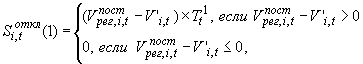 S(откл)_g,i - изменение стоимости электрической энергии в случае отклонения фактически поставленного g-м крупным производителем объема электрической энергии в час t расчетного периода от договорного объема, определенное следующим образом: