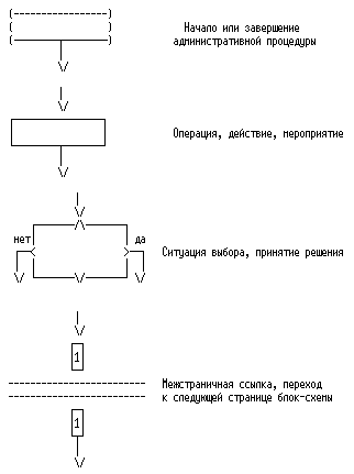 Условные обозначения на блок-схеме последовательности административных процедур при исполнении государственной функции