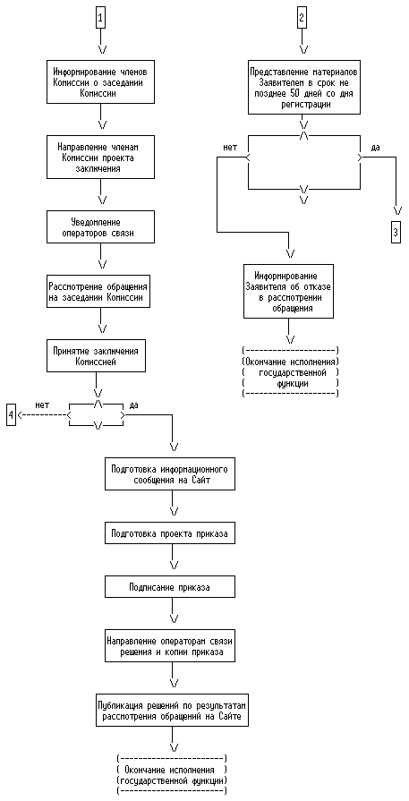 последовательности административных процедур при исполнении государственной функции по рассмотрению обращений операторов связи по вопросам присоединения сетей электросвязи и взаимодействия операторов связи и принятию по ним решений Комиссией Россвязьохранкультуры