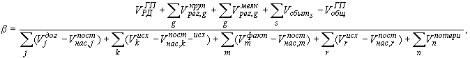 Если ГП (ЭСО, ЭСК) владеет на праве собственности или ином законном основании генерирующими объектами и обладает правом на продажу произведенной электрической энергии (мощности), но не осуществляет ее продажу на оптовом рынке, то объемы произведенной электроэнергии (мощности) учитываются при определении коэффициента бета и приравниваются к объемам покупки у соответствующего g-го производителя электрической энергии;