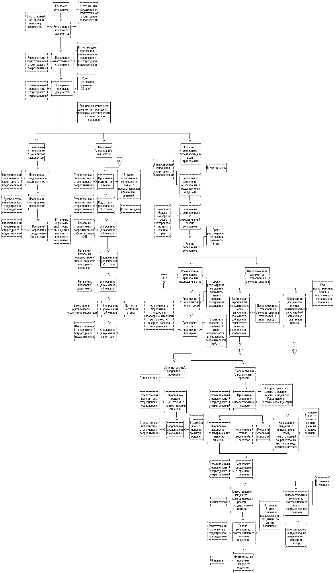 2.2. Административные процедуры по осуществлению мероприятий по контролю в отношении соискателей лицензии и лицензиатов исполняются в центральном аппарате и территориальных управлениях Россвязьохранкультуры.