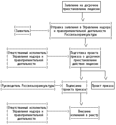 БЛОК-СХЕМА АДМИНИСТРАТИВНОЙ ПРОЦЕДУРЫ "ДОСРОЧНОЕ ПРЕКРАЩЕНИЕ ДЕЙСТВИЯ ЛИЦЕНЗИИ НА ОСУЩЕСТВЛЕНИЕ ВОСПРОИЗВЕДЕНИЯ (ИЗГОТОВЛЕНИЯ ЭКЗЕМПЛЯРОВ) АУДИОВИЗУАЛЬНЫХ ПРОИЗВЕДЕНИЙ И ФОНОГРАММ НА ЛЮБЫХ ВИДАХ НОСИТЕЛЕЙ"