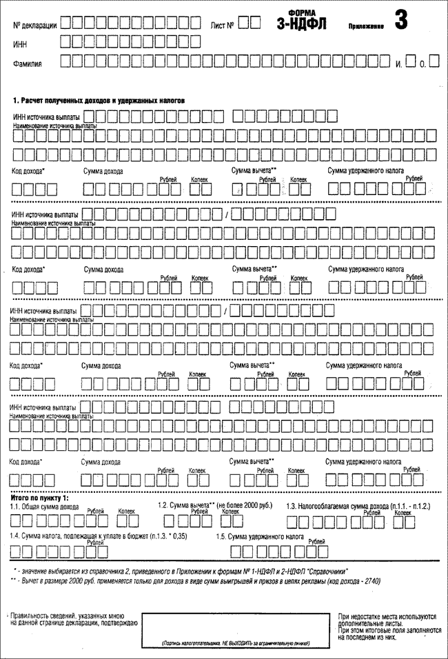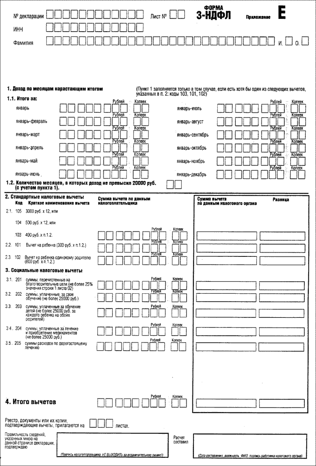 Приказ МНС РФ от 24.10.2002 N БГ-3-04/592, Инструкция по заполнению деклараций по налогу на доходы физических лиц согласованная Приказом, листы 1 - 2, приложения А - Д Формы N 3-НДФЛ, Форма N 4-НДФЛ к приказу включены в базу отдельными документами.