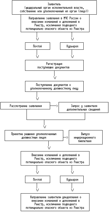13.4. Блок-схема порядка внесения изменений и дополнений в Реестр, исключения подводных потенциально опасных объектов из Реестра приведена в приложении N 3.
