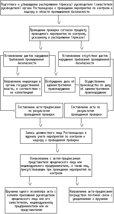 проведение мероприятия по контролю и надзору, составление и вручение акта или акта - предписания по результатам проверки соблюдения требований промышленной безопасности;