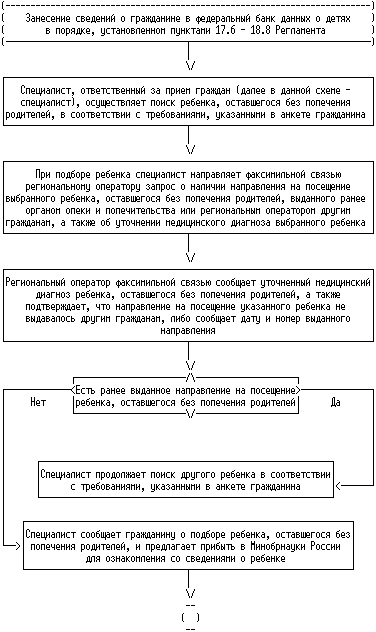 6.1. В качестве заявителей для получения информации о детях, оставшихся без попечения родителей, из федерального банка данных о детях могут выступать граждане, желающие принять ребенка на воспитание в свою семью (далее - граждане), а именно: граждане Российской Федерации, постоянно проживающие на территории Российской Федерации и желающие усыновить детей, оставшихся без попечения родителей, принять их под опеку (попечительство) или в приемные семьи (далее - граждане Российской Федерации), а также граждане Российской Федерации, постоянно проживающие за пределами Российской Федерации, иностранные граждане и лица без гражданства, желающие усыновить детей, оставшихся без попечения родителей, при наличии оснований, установленных Семейным кодексом Российской Федерации от 29 декабря 1995 г. N 223-ФЗ (Собрание законодательства Российской Федерации, 1996, N 1, ст. 16; 1998, N 26, ст. 3014; 2000, N 2, ст. 153; 2005, N1, ст. 11) (далее - Семейный кодекс Российской Федерации), Правилами передачи детей на усыновление (удочерение) и осуществления контроля за условиями их жизни и воспитания в семьях усыновителей на территории Российской Федерации, утвержденными постановлением Правительства Российской Федерации от 29 марта 2000 г. N 275 (далее - Правила передачи детей на усыновление), Правилами ведения государственного банка данных о детях, оставшихся без попечения родителей, и осуществления контроля за его формированием и использованием, утвержденными постановлением Правительства Российской Федерации от 4 апреля 2002 г. N 217 (далее - Правила ведения государственного банка данных о детях).
