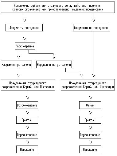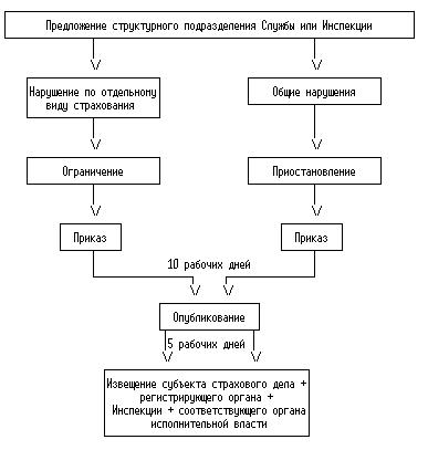 1) принятие решения об ограничении или приостановлении действия лицензии субъекта страхового дела. Схема действий Службы при принятии решения об ограничении или приостановлении действия лицензии приводится в Приложении N 1 к настоящему Административному регламенту;