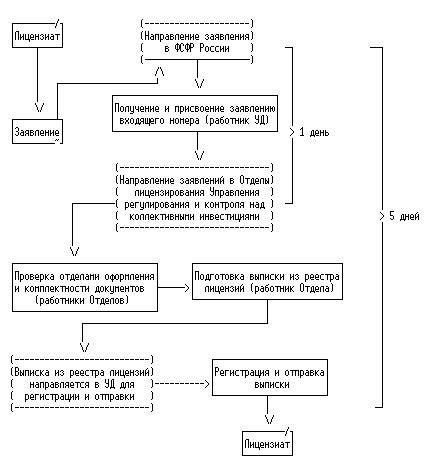 15. В случае поступления от соискателя лицензии или лицензиата письменного запроса на получение форм заявлений и иных документов, необходимых для исполнения государственной функции, ФСФР России представляет эти формы и документы в срок, не превышающий 3-х рабочих дней с даты регистрации в Управлении делами и архива (далее - УД) соответствующего запроса.