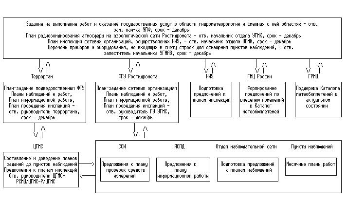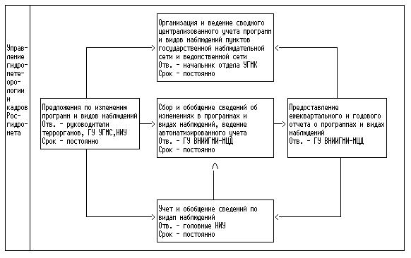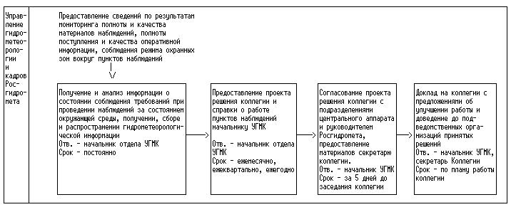 В Росгидромете ответственными за исполнение указанной государственной функции являются Управление гидрометеорологии и кадров (далее - УГМК), Управление геофизического мониторинга, активных воздействий и государственного надзора (далее - УГМАВ), Управление планирования, финансирования, учета и отчетности, федерального имущества (далее - УПФ) и Организационно-правовое управление (далее - ОПУ).