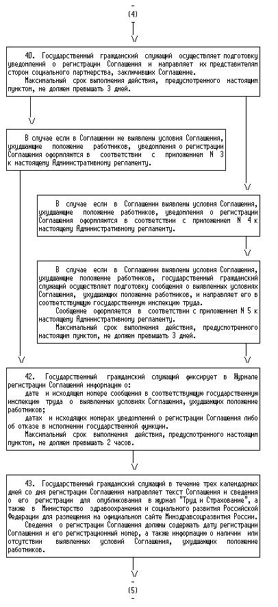 получение представителями сторон Соглашения уведомлений о регистрации Соглашения с указанием даты регистрации, регистрационного номера Соглашения, а также информации о выявленных условиях Соглашения, ухудшающих положение работников. Уведомления о регистрации Соглашения оформляются в соответствии с приложениями N 3 - 4 к настоящему Административному регламенту;