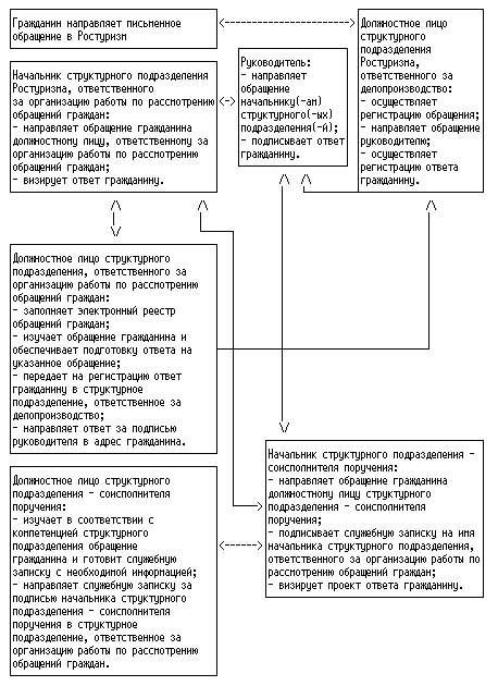 При подготовке ответов на письменные обращения граждан в Ростуризме должностное лицо структурного подразделения, ответственного за исполнение поручения о рассмотрении обращения гражданина, исполняет его в соответствии с резолюцией начальника структурного подразделения Ростуризма, ответственного за исполнение поручения о рассмотрении обращения гражданина.