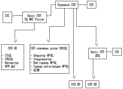 1. Корневой СКП - издатель всех СКП для ключевых узлов СИОЭД (и, при необходимости, для НП тоже).