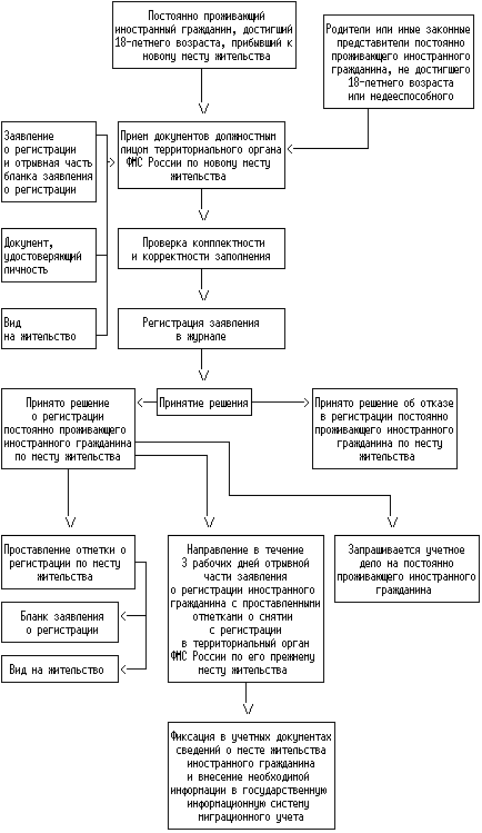 Регистрация иностранного гражданина (снятие с регистрации) оформляется путем проставления отметки о регистрации иностранного гражданина (снятии с регистрации) по месту жительства в Российской Федерации (приложение N 1 к Административному регламенту) на виде на жительство или в разрешении на временное проживание, а также в заявлении иностранного гражданина о регистрации по месту жительства.