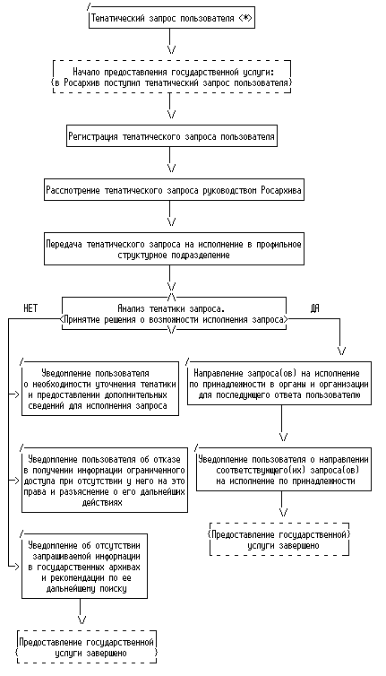 6. Государственная услуга по организации информационного обеспечения пользователей предоставляется Росархивом в виде: информационных писем; информационных писем с приложением архивных справок, архивных выписок, архивных копий, тематических перечней, тематических подборок копий архивных документов, тематических обзоров архивных документов.