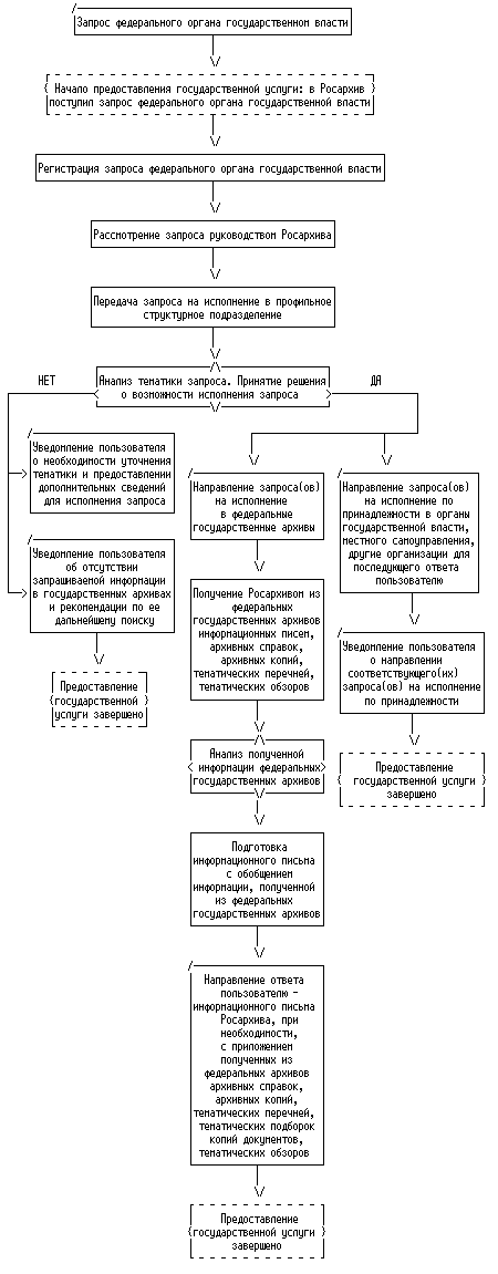Блок-схема N 1 последовательности действий Росархива по предоставлению государственной услуги по организации исполнения социально-правовых запросов российских граждан, поступивших в Росархив