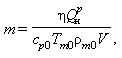 А.2.1. Рассчитывают отношение тепла, которое может выделиться при сгорании 1 кг горючего материала, к теплосодержанию воздуха в помещении до пожара m (1/кг):