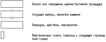 УСЛОВНЫЕ ОБОЗНАЧЕНИЯ К БЛОК-СХЕМАМ ПОСЛЕДОВАТЕЛЬНОСТИ ДЕЙСТВИЙ ПРИ ИСПОЛНЕНИИ АДМИНИСТРАТИВНЫХ ПРОЦЕДУР