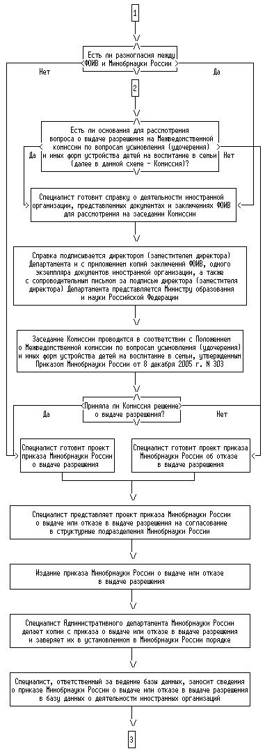 1. Административный регламент Министерства образования и науки Российской Федерации (далее - Минобрнауки России) по исполнению государственной функции по выдаче разрешений на открытие представительств иностранных государственных органов и организаций по усыновлению (удочерению) детей на территории Российской Федерации и разрешений на осуществление деятельности по усыновлению (удочерению) детей на территории Российской Федерации представительствами иностранных некоммерческих неправительственных организаций и контролю за их деятельностью (далее - Регламент) определяет сроки и последовательность действий (административных процедур) при исполнении указанной государственной функции.