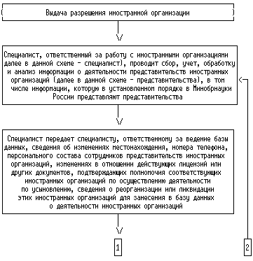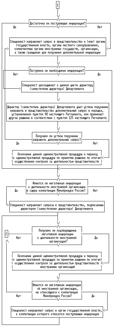 БЛОК-СХЕМА ПОСЛЕДОВАТЕЛЬНОСТИ ДЕЙСТВИЙ ПРИ ИСПОЛНЕНИИ АДМИНИСТРАТИВНОЙ ПРОЦЕДУРЫ ПО ОСУЩЕСТВЛЕНИЮ МОНИТОРИНГА ДЕЯТЕЛЬНОСТИ ПРЕДСТАВИТЕЛЬСТВ ИНОСТРАННЫХ ОРГАНИЗАЦИЙ
